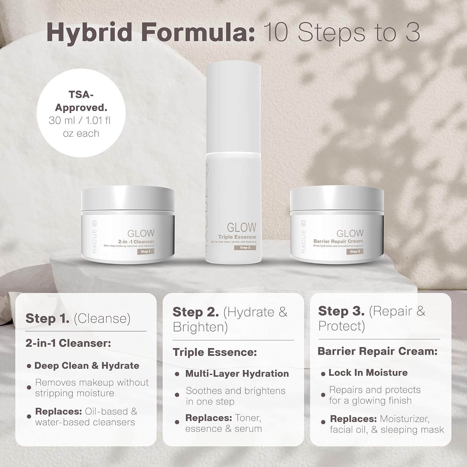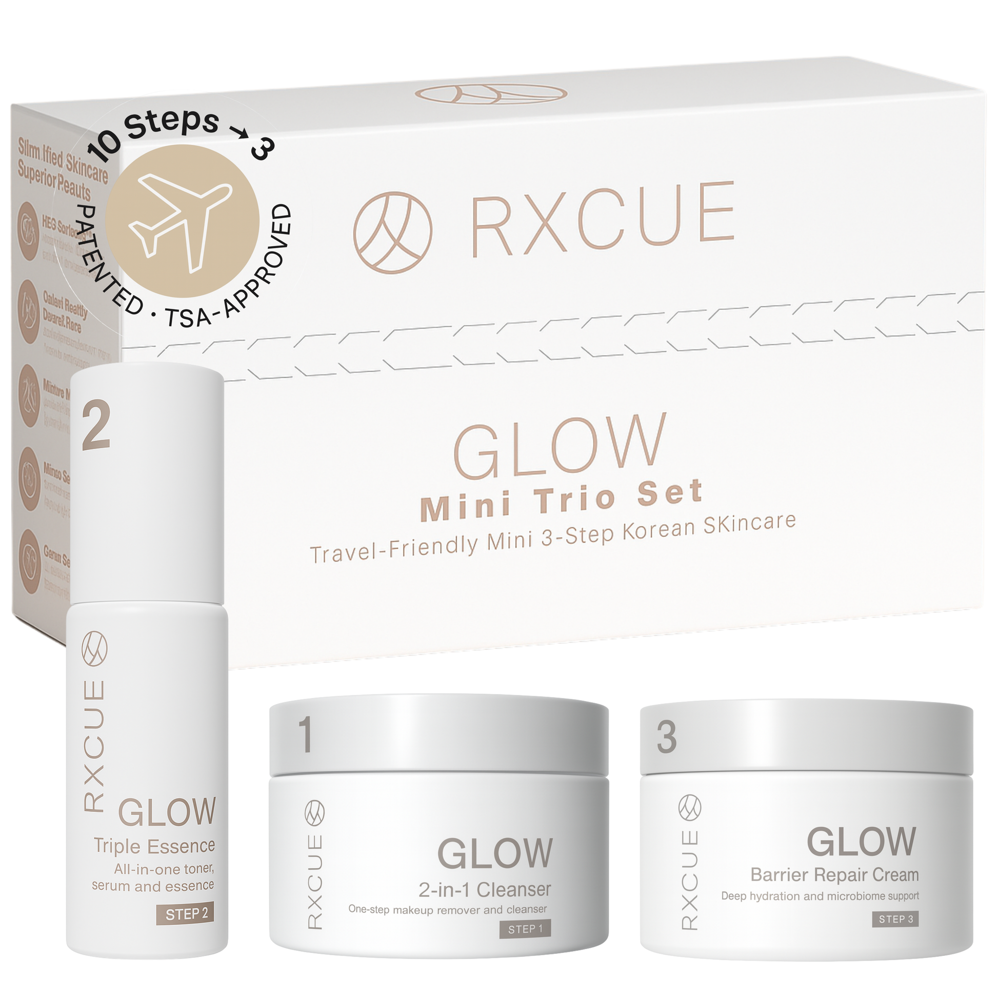 The Rxcue Glow Mini Trio Set delivers the power of a complete skincare routine in just three multi-functional steps. From cleanser to cream, this set merges innovation and functionality to simplify skincare without compromising efficacy.