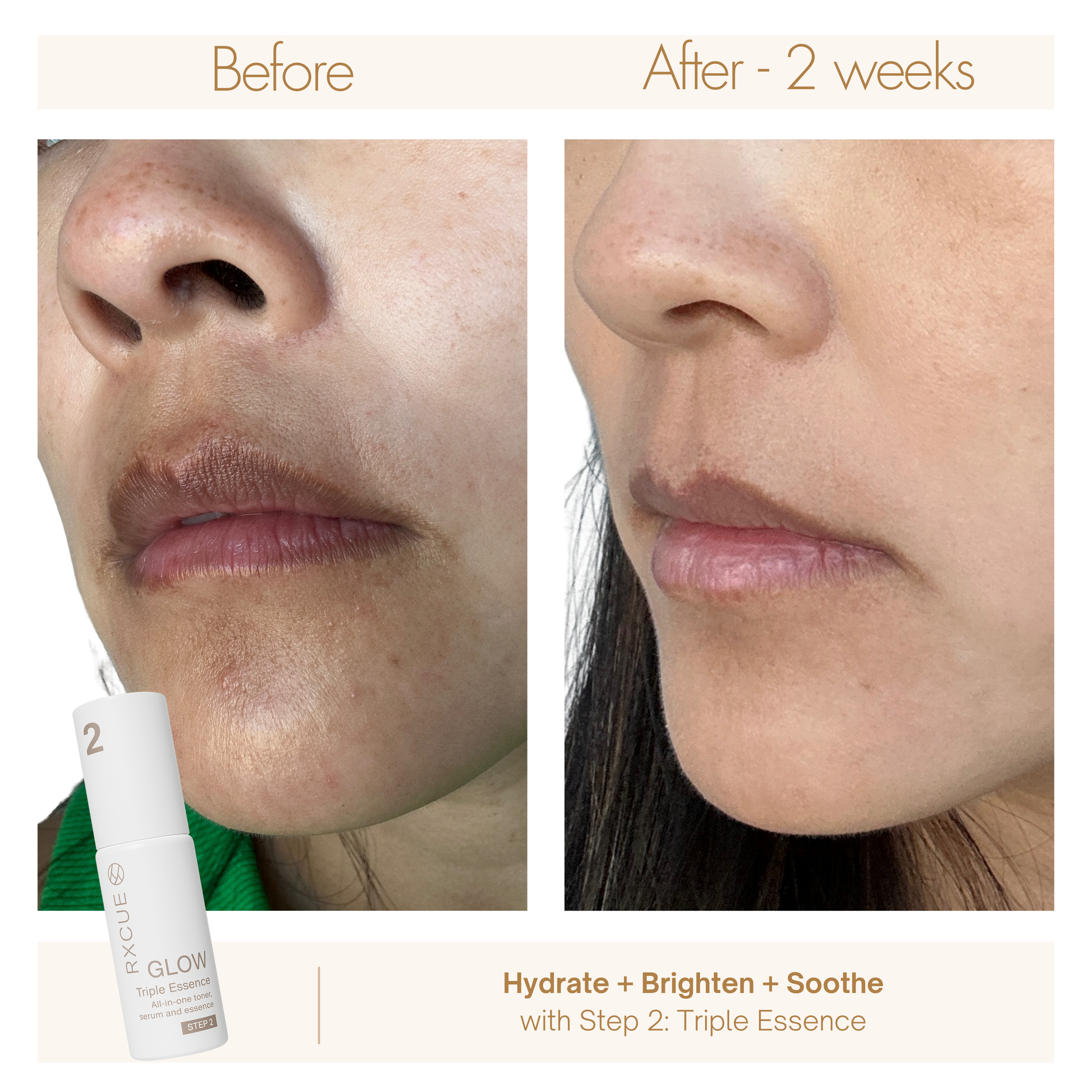 Triple Essence deeply hydrates skin using a unique emulsion-to-water transformation, mimicking the effects of the Korean 7-skin method (apply toner 7 times) in a single step.